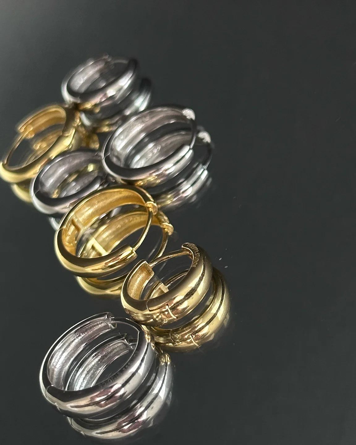 Dome Hoops Medium er et par chunky og tidsløse øredobber til enhver smykke samling. De ser flotte ut alene, men deres allsidige design gjør dem perfekte for å kombinere med andre øredobber.