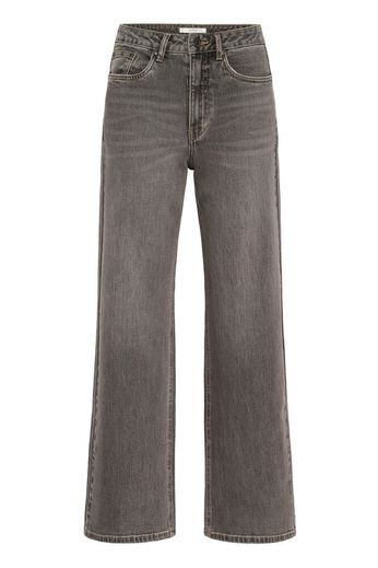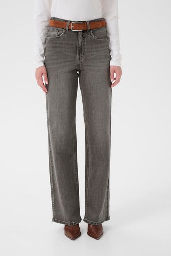 Disse jeans er store i størrelsen. Gestuz anbefaler å gå ned én størrelse. Wide leg jeans med rett, løstsittende silhuett, høy midje og klassisk fem-lommers design. Synlig struktur i denim og sikker knappelukking.