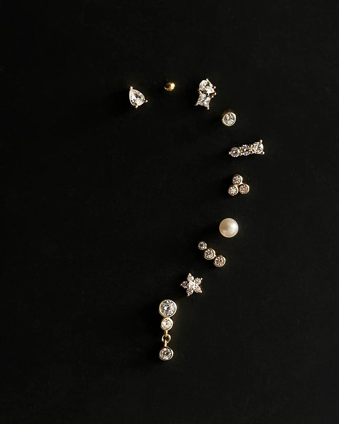 Drop Nona Trio Øredobber er et høykvalitets smykke, laget av ren 925 sterling sølv, forgylt med 18 karat gull. Disse øredobber er prydet med 3 hvite zirkoniasteiner.