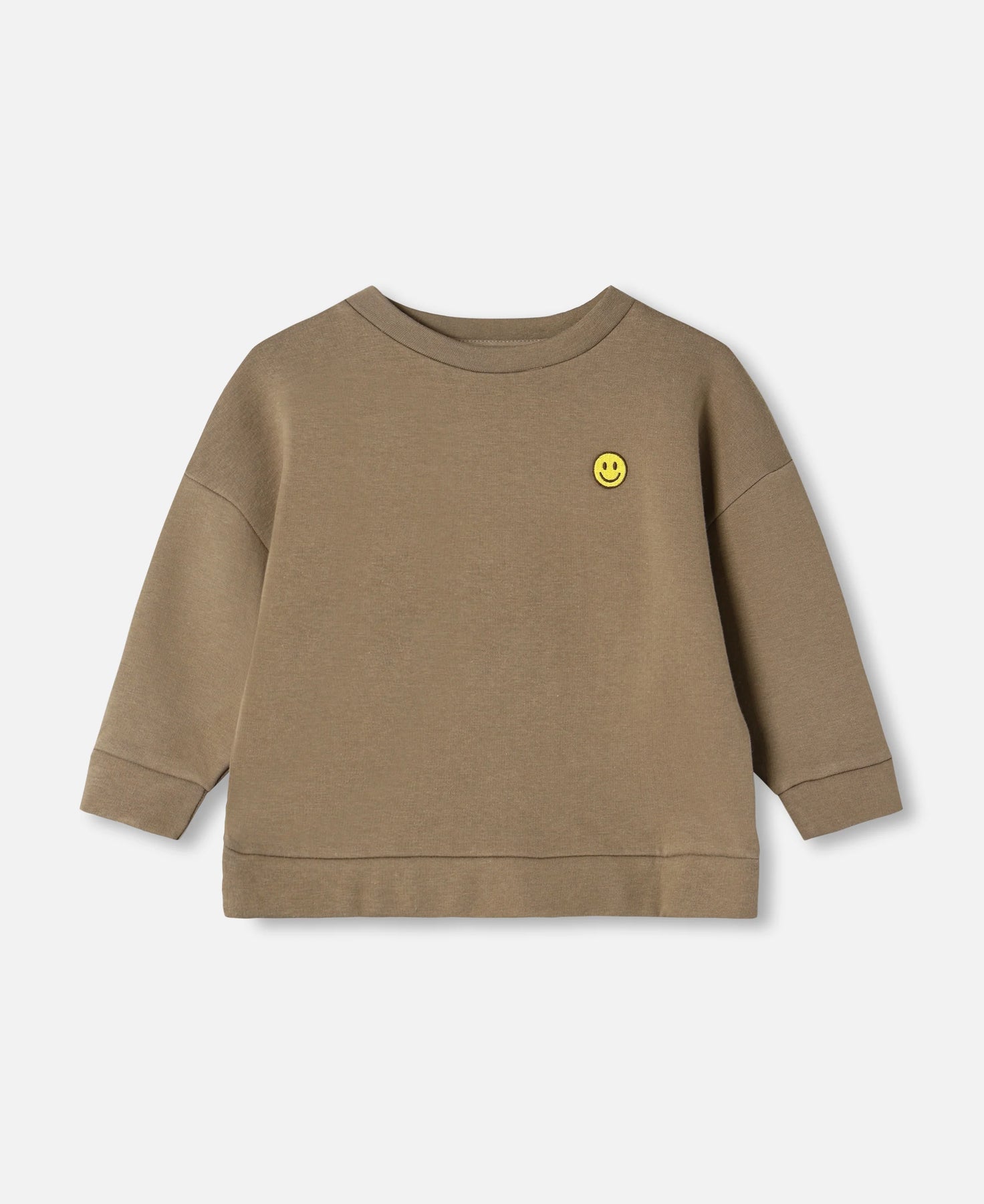 Pullover in soft sweat with long sleeves. The blouse has a loose fit with good spaciousness, making it comfortable to play in and look at.